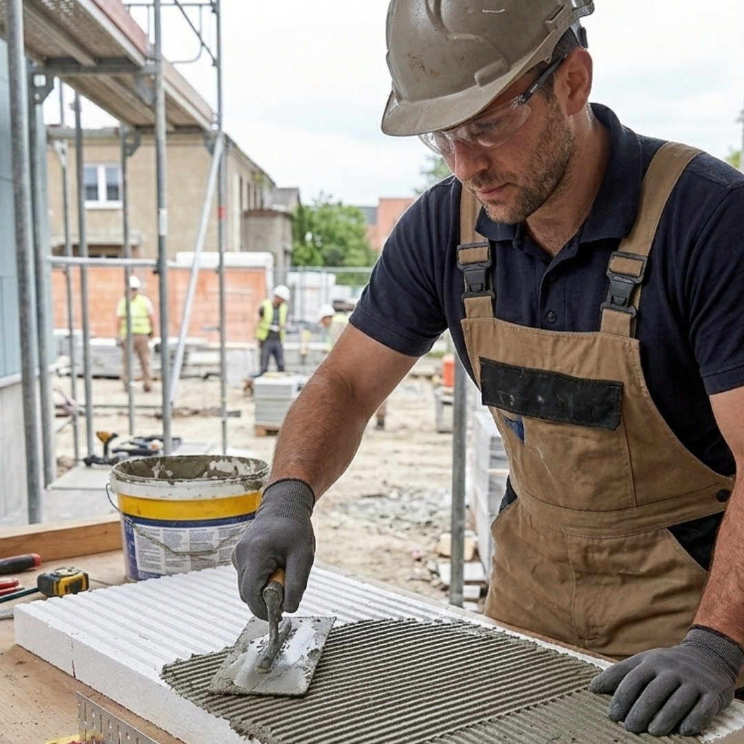 2. Διάστρωση Συγκολλητικού Επιχρίσματος: Εφαρμογή ειδικής κόλλας περιμετρικά και σε σημεία για βέλτιστη πρόσφυση.